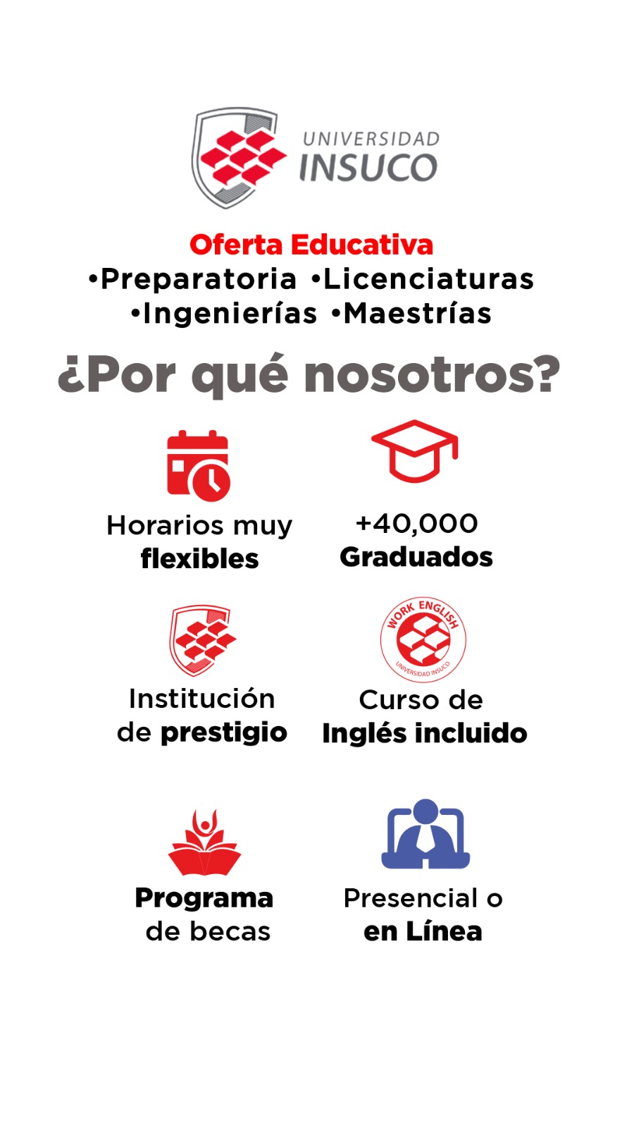 Ofrece un 65% de beca sobre la colegiatura ordinaria vigente en preparatoria, carreras profesionales y modalidad enlace «En linea»